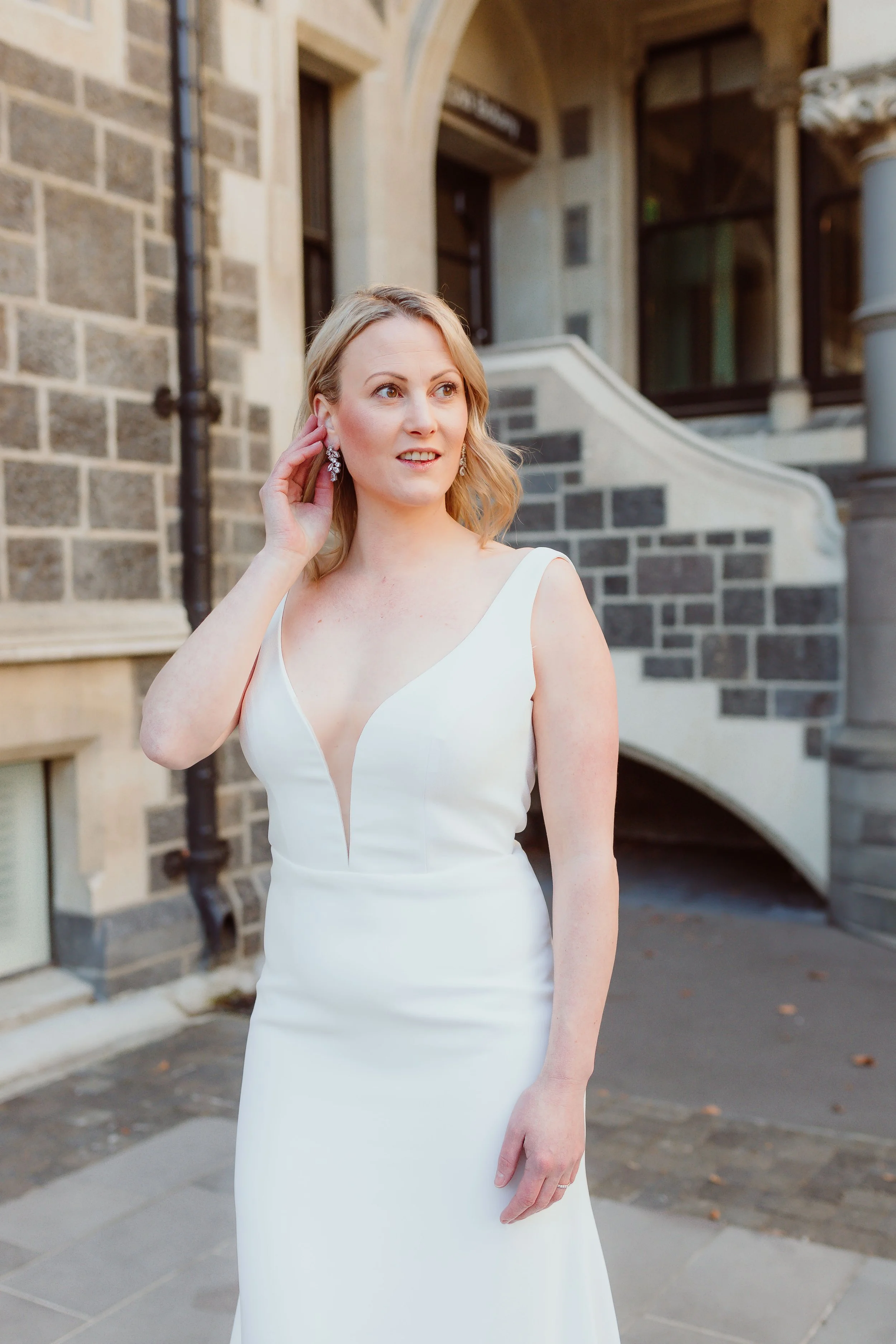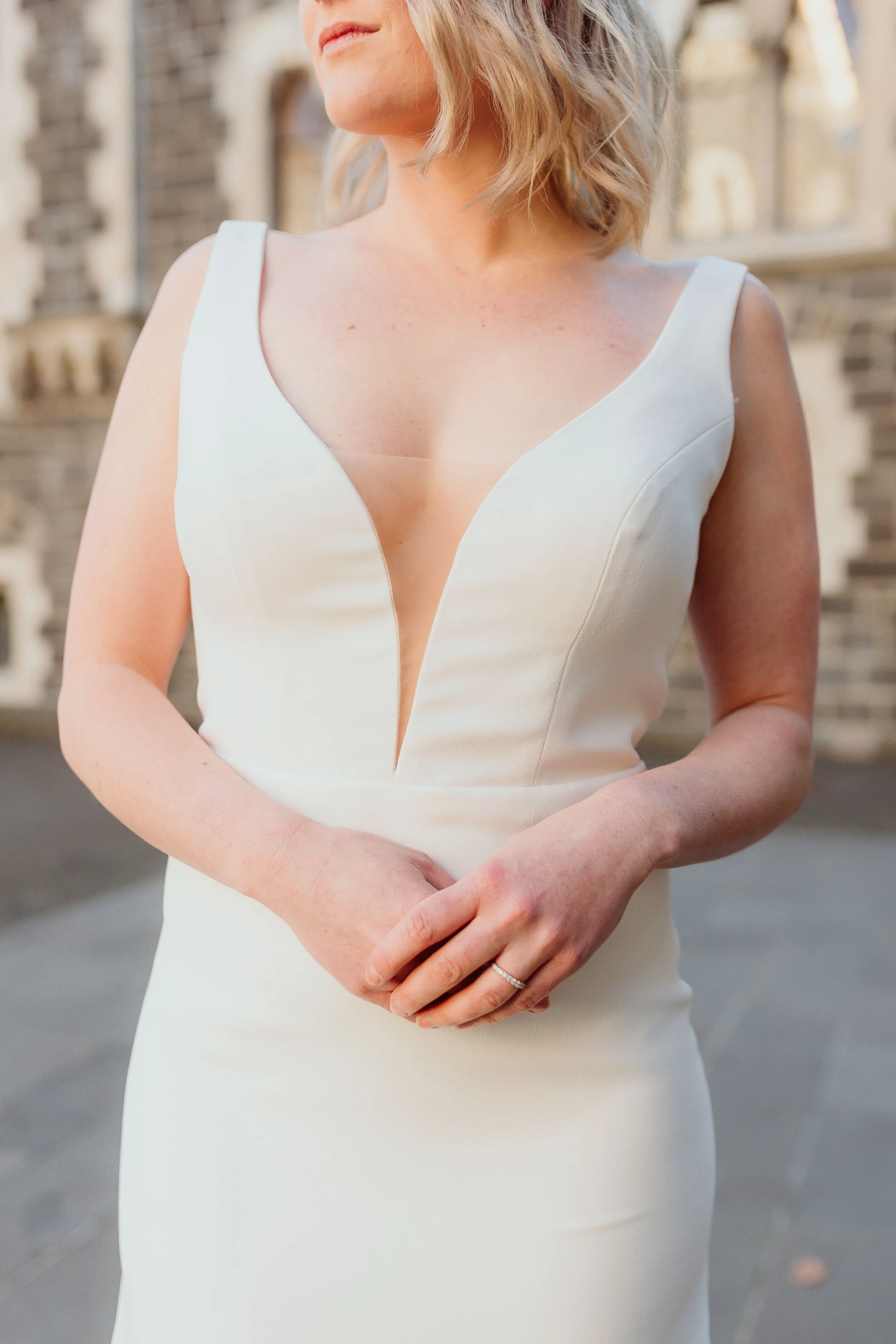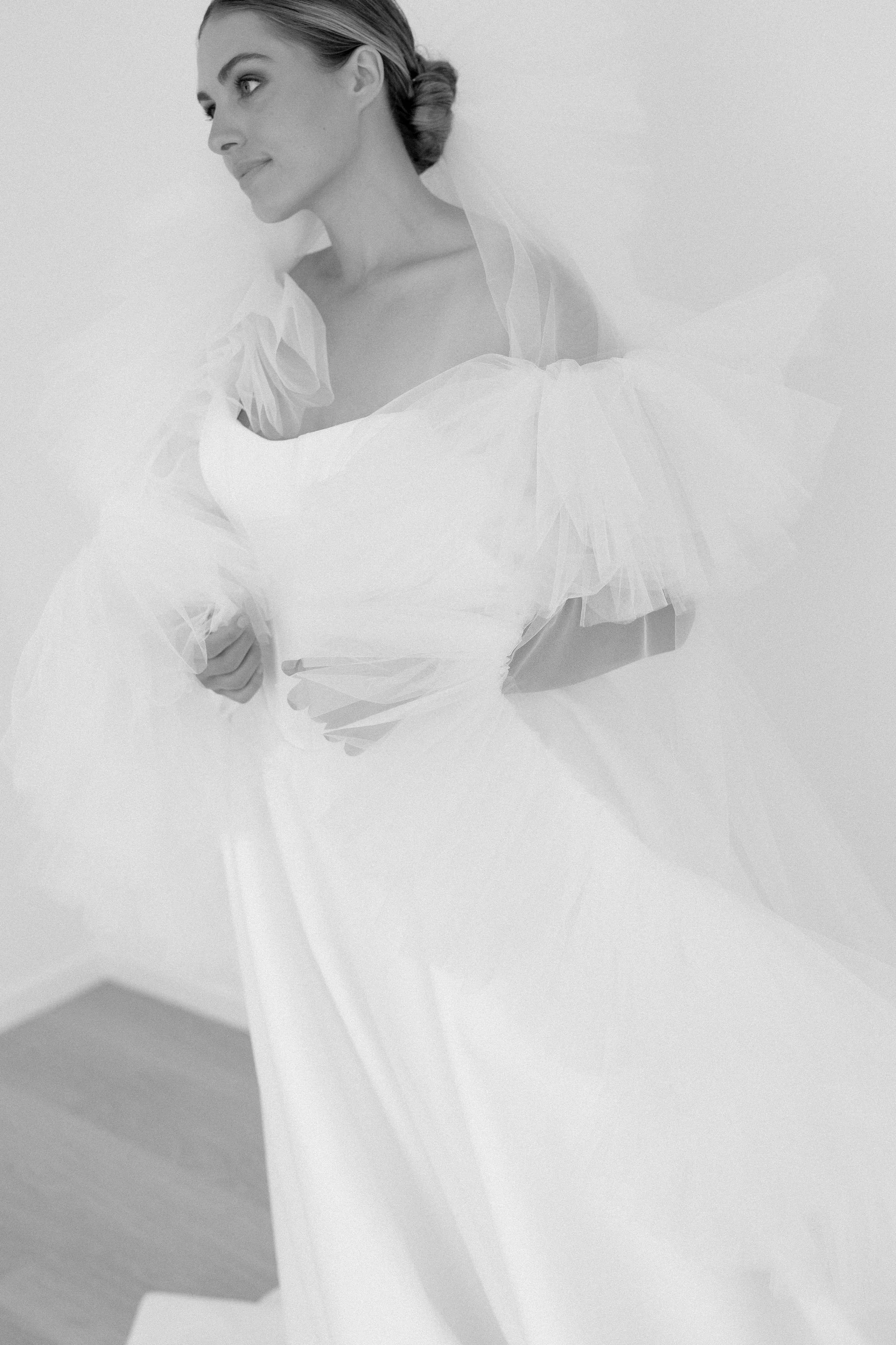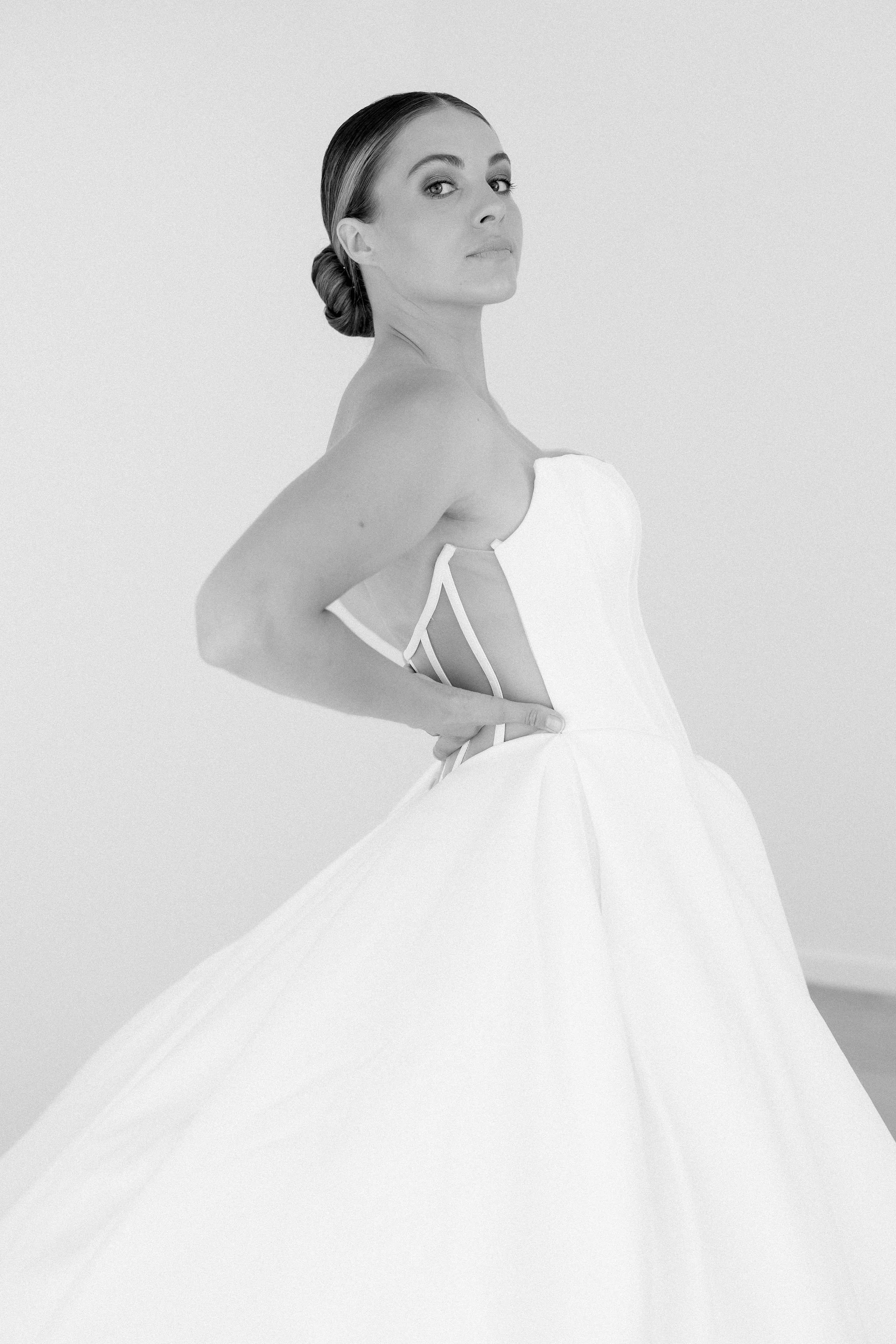 With clean lines, subtle sophistication, and a minimalist approach that lets the beauty of the bride shine through.